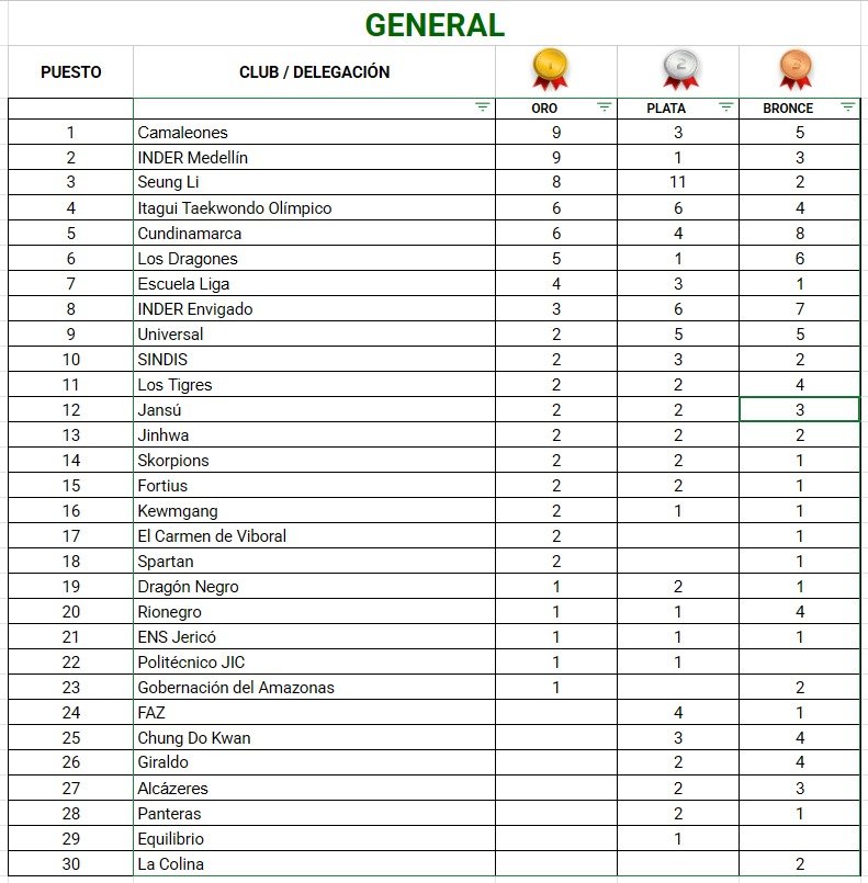 - Segundo lugar: Inder Medellín – 9 oro, 1 plata, 3 bronce